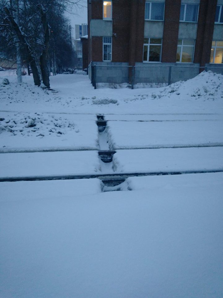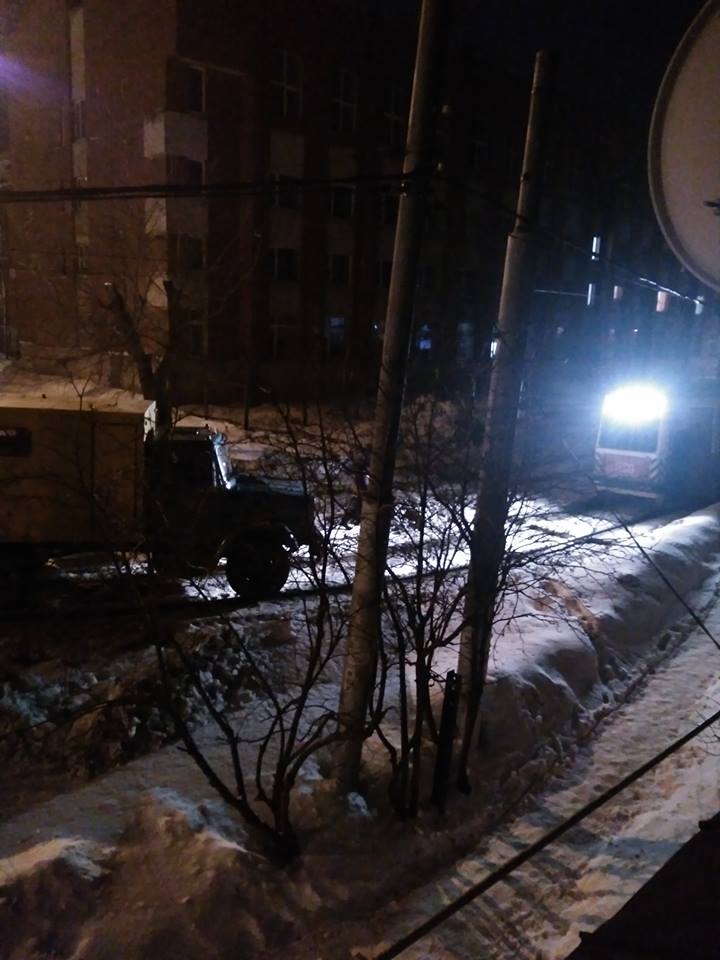 В 23.50 я позвонила в трамвайное депо, дежурная ответила мне, что это ночной вид работ. В 00.15 приехала полиция. Компрессор был тут же выключен. Наступила тишина. Видимо, никаких прав на ночные работы МУЭТ не имеет.. Но работы выполнены, прорыт широкий водоотвод в сторону тротуара. Трамвай подсвечивал фарами, чтобы копать было удобнее. Ждём таяния снега, когда тротуар зальет водой. Сделать водоотвод на 10 метров левее, чтобы вода не топила тротуар и дворы, у работников МУЭТ ума не хватает уже много лет.