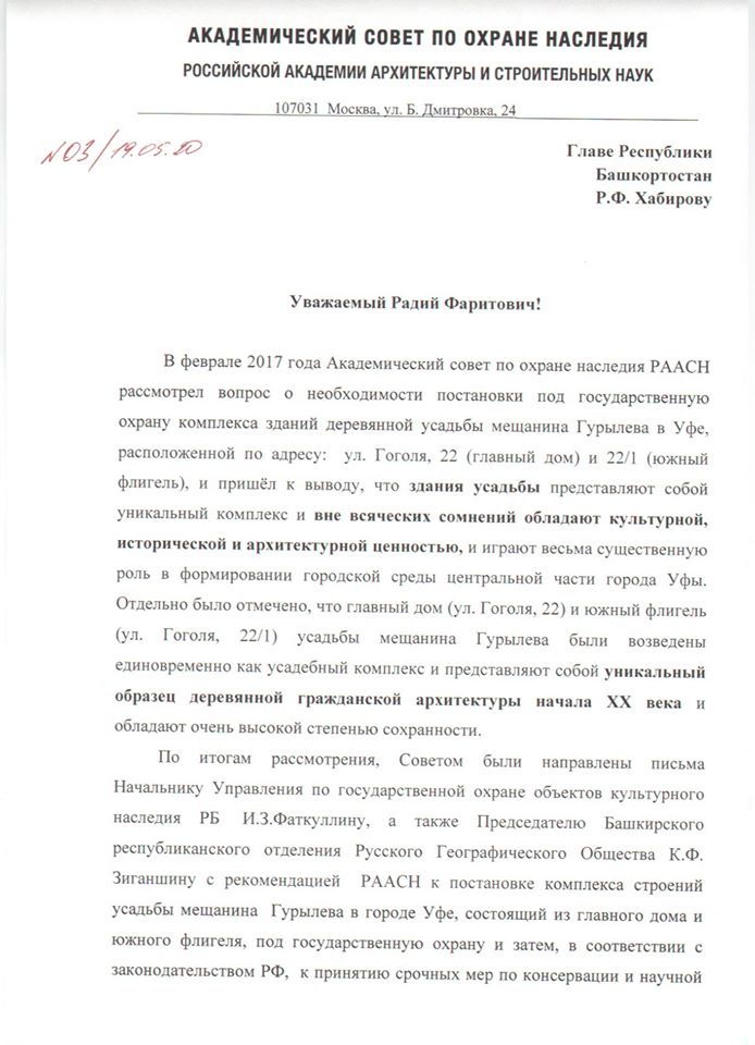 В этот день мы хотим привлечь внимание к усадьбе Гурылева (Гоголя, 22), который в карантинные месяцы подвергся тихой атаке заинтересованных лиц. В связи с чем Архзащита Уфы обратилась к горожанам с просьбой забросать соответствующие органы письмами о некачественно проделанной экспертизе, на основе которой старинную усадьбу собирались лишить статуса памятника. В результате экспертизу отправили на доработку, но на этом градозащитники не успокоились: мы обратились к авторитетным источникам с просьбой вступиться за этот ценный для города дом. Вот некоторые из них: