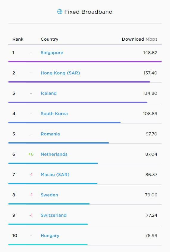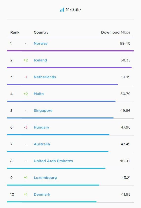 Роисся вперде. 75 место в мире по скорости мобильного интернета, 39 место по стационарному.