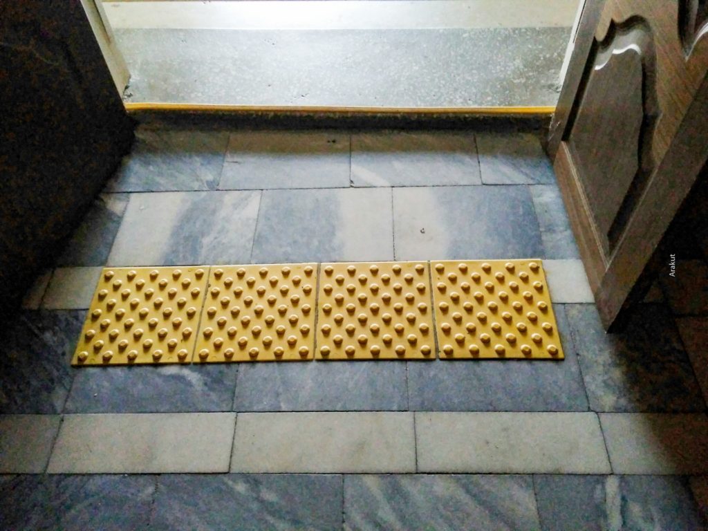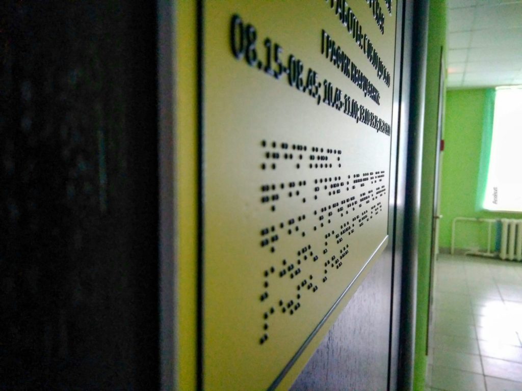 (фото 11, 12) Для слабовидящих на полу есть специальные засечки, важные вывески продублированы шрифтом Брайля. У стен перила, чтобы помочь тем, кто не может нормально передвигаться.