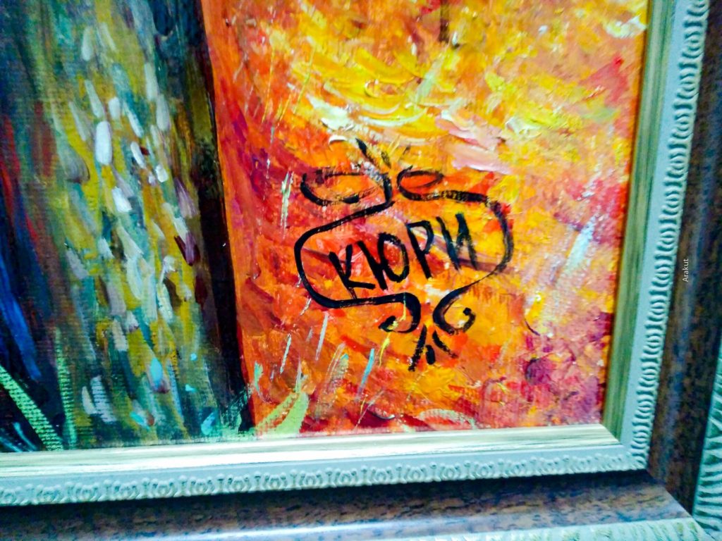 (фото 18,19,20,21) Там же есть целая картинная галерея! Мастер подписывает свои работы как «кюри», может вы слышали о таком художнике? Хотелось немного с ним поболтать, но он был занят работой, так что решил не отвлекать. Все стены в его работах, это потрясающе)