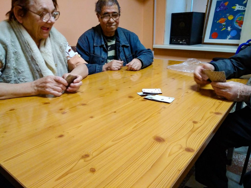(фото 23) Напоследок поиграли в карты. Никто не поддавался, все честно) В процессе меня попросили помочь — человек упал и его надо было поднять на кровать. Уровень моей паники мгновенно вырос с «все ок» до «мне конец)»