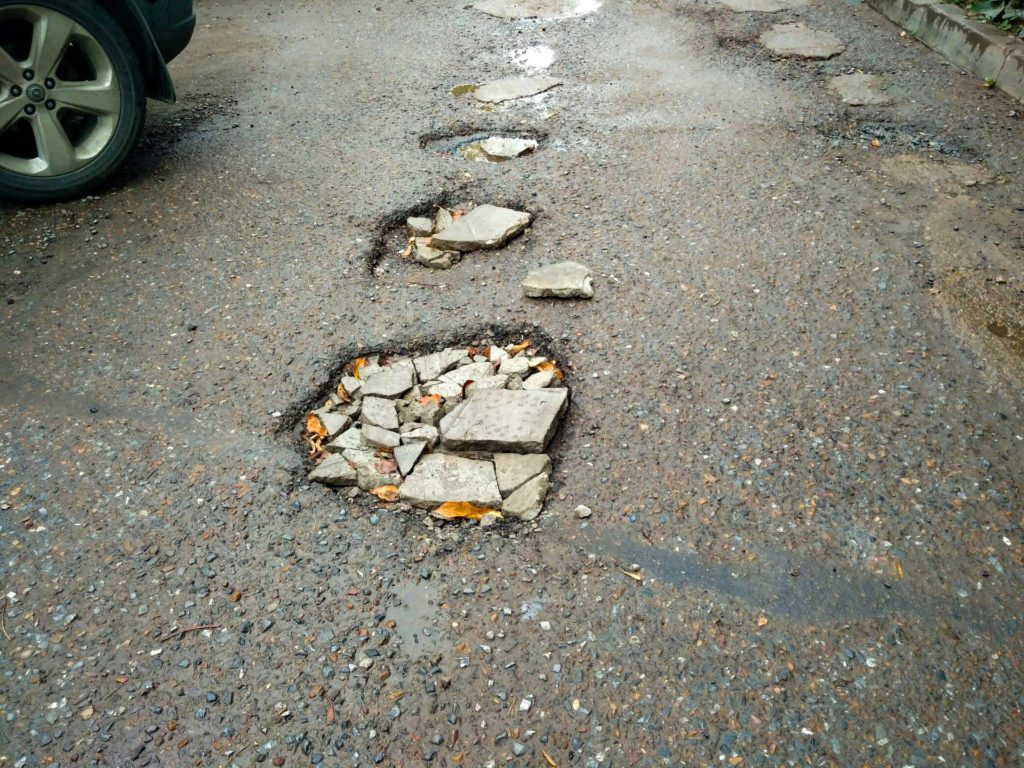 Ямочный ремонт руками местных жителей. Претензий нет, лучше уж так, хоть никак. Но камни были разбросаны через пару часов.