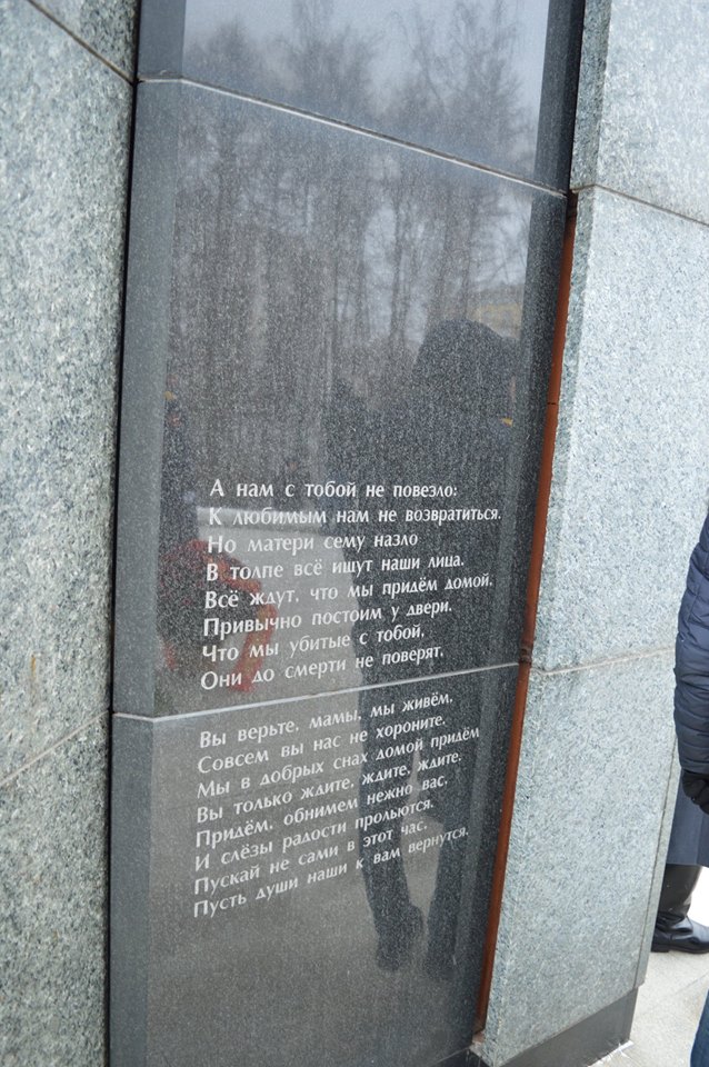 Когда мама, потерявшая на войне сына, кладет гвоздики к памятнику Скорбящей матери… Нет слов.
