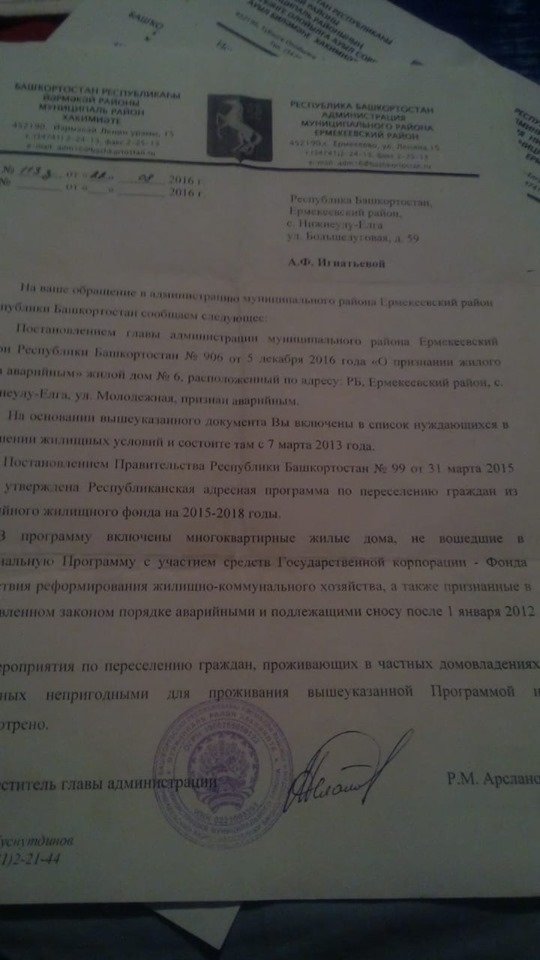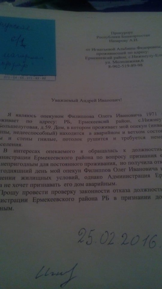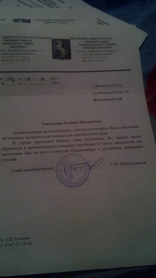 Однако недавно героиня статьи сама нашла меня и обратилась за помощью. Созвонившись с ней и получив от нее фотографии ее многочисленных обращений в прокуратуру и чиновникам, увидев собственными глазами, что семья годами пыталась пробить головой стену равнодушия районных чиновников… я очень надеюсь, что наши республиканские власти, наш новый министр здравоохранения Максим Забелин и Глава РБ Радий Хабиров смогут помочь семье из далекого села в Ермекеевском районе.
