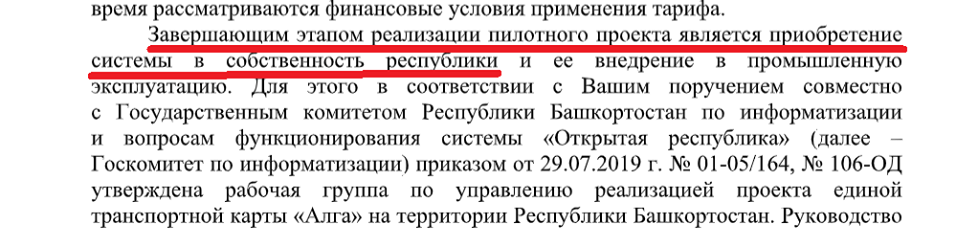 Но и это еще, можно сказать цветочки, дальше тут уже ягодки начинают появляться, а именно… никто нам саму систему не дарит, её бюджет будет выкупать и судя по всему на безальтернативной основе, ибо уже внедряется и как оно всегда бывает, за фантастические деньги, о чем свидетельствуют выдержки из письма г Мухаметьянова Тимура Рафисовича главе региона.