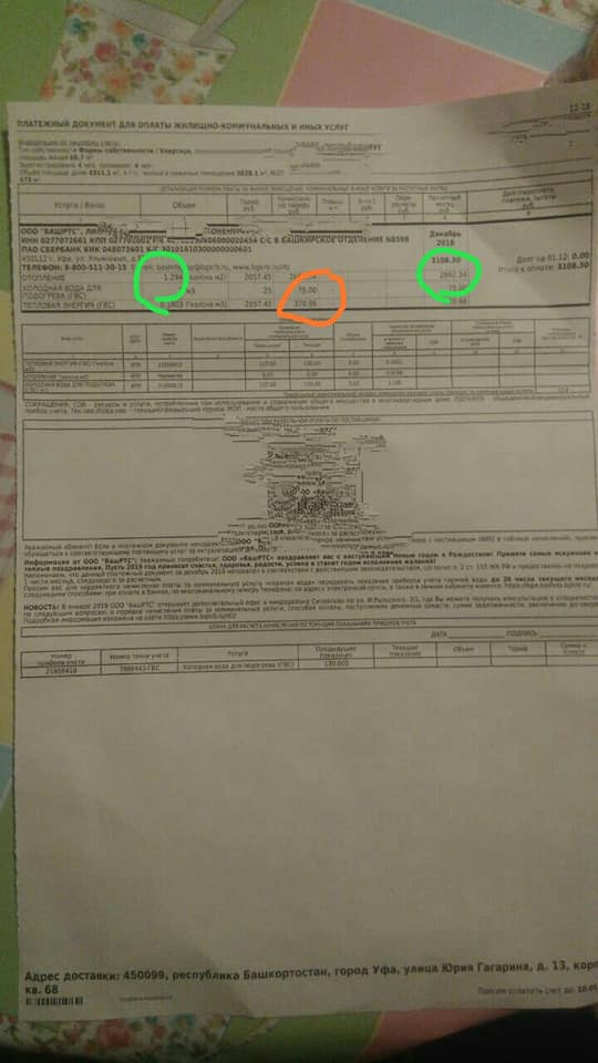 2. Жители Сипайлово очень удивились, что плата за отопление выросла в полтора раза (скрины прикрепил). Оказалось, и УЖХ, и БашРТС дважды выставили плату за горячую воду. Кроме того, по непонятной пока причине, БашРТС стал начислять по нормативу, вместо данных по показаниям счётчиков, которые были в ноябре 2018 года и ранее. Вот вам все прелести переходов на прямые договоры. Когда во всеуслышание заявляли, что это повысит прозрачность платежей. Прозрачностью пока не пахнет, а вот плата сразу повысилась.