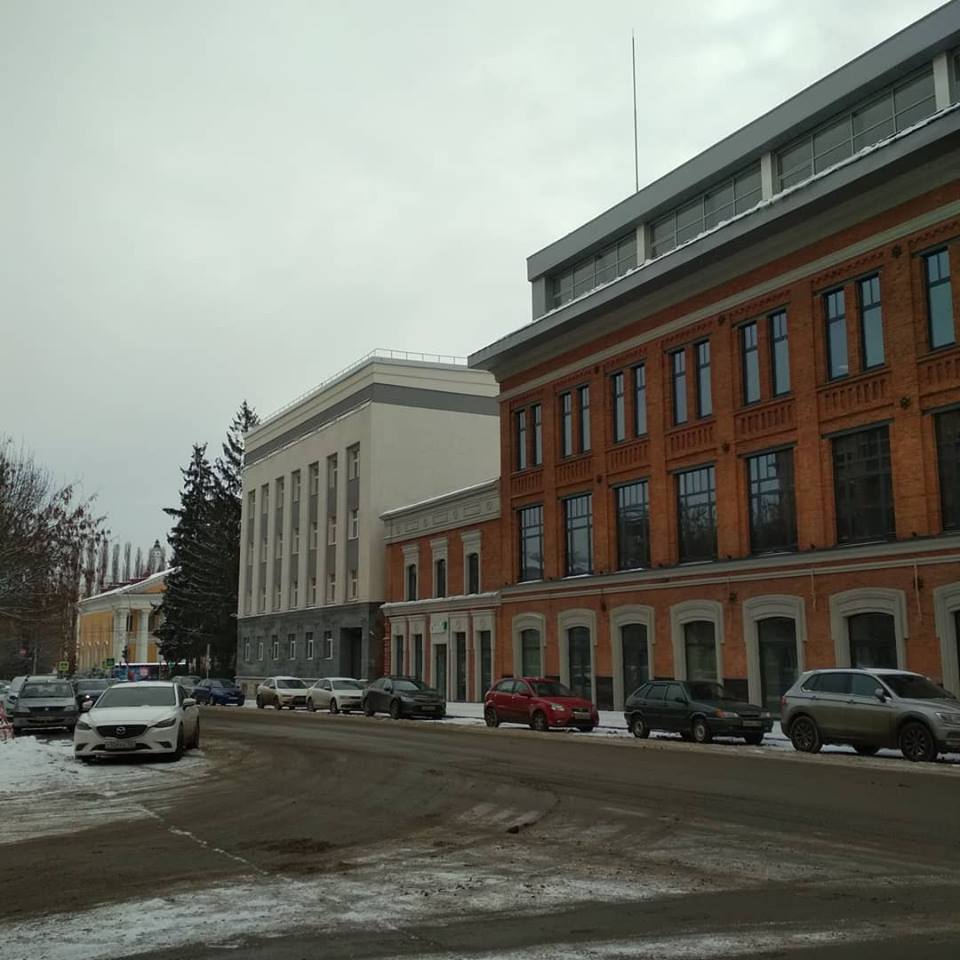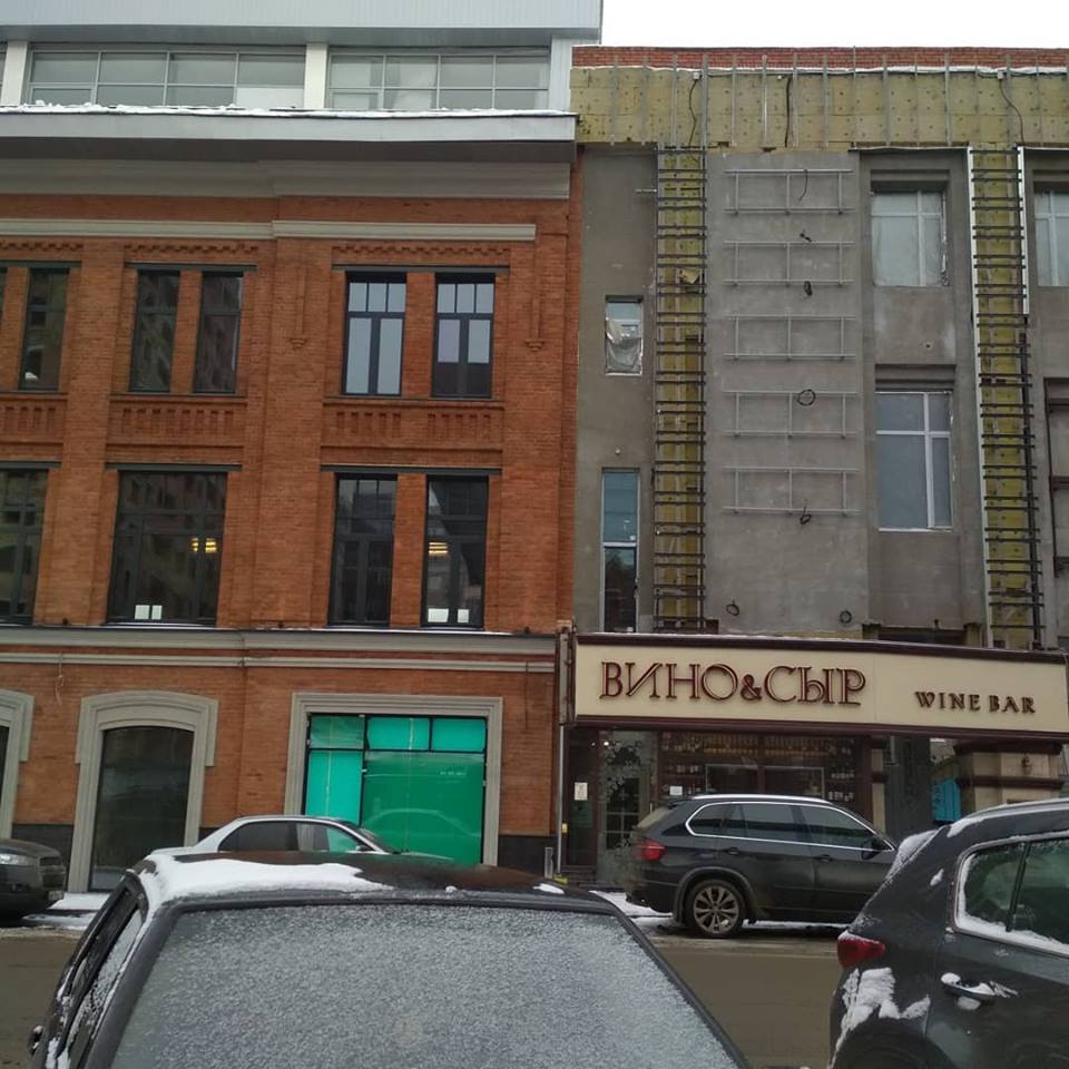 На перекрестке с улицей Мустая Карима ремонтируется дом 86, очищен фасад — очень приглядный в будущем Арт-квадрат (http://www.art-kvadrat.com/4/)