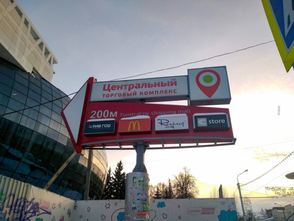 Tsentral’ny. Torgoviy komplieks Tsentral’ny. На самом деле, где подпись на башкирском?) Ну и кавычки вокруг тсентрального, хотя бы.