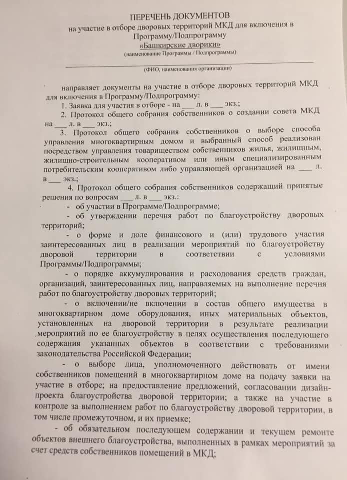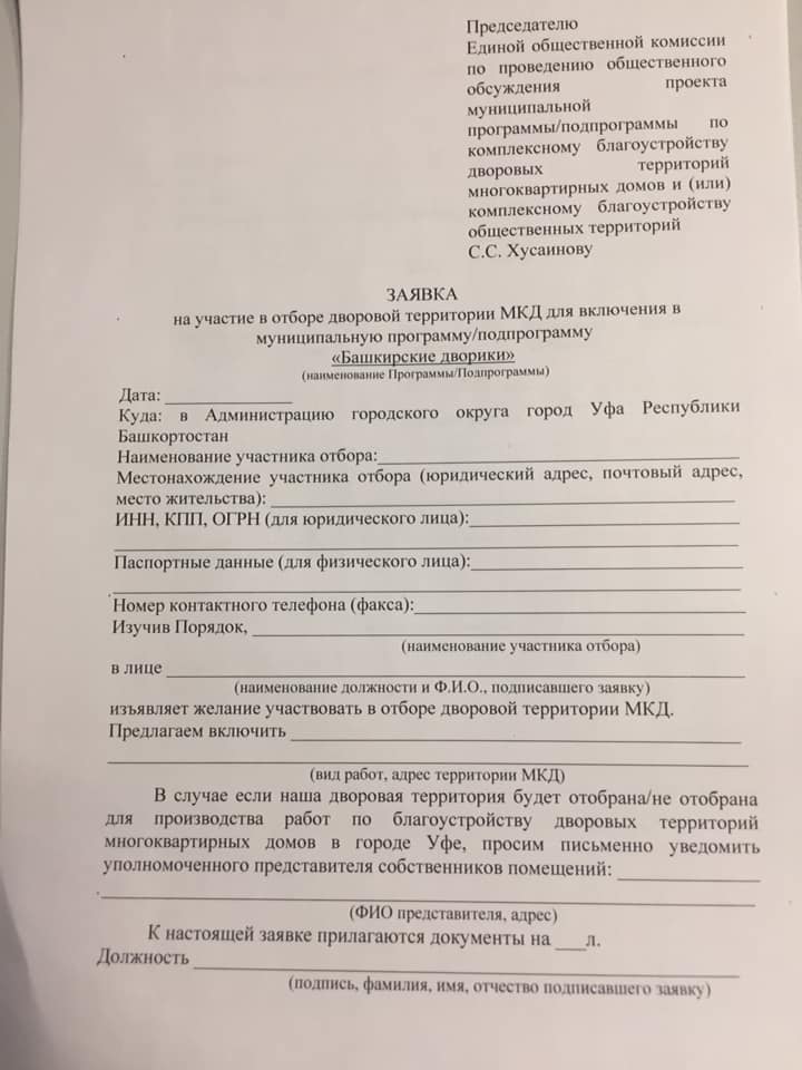1. После проведения собрания необходимо направить в муниципалитет заявку на благоустройство двора. Фотография заявки есть в карусели, а также на сайте ufacity.info/dvori/