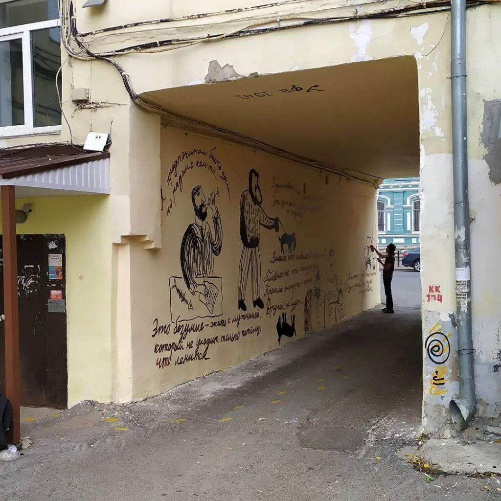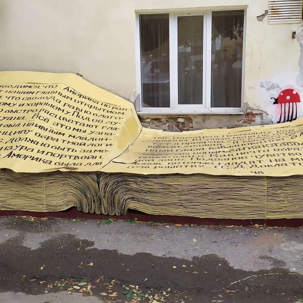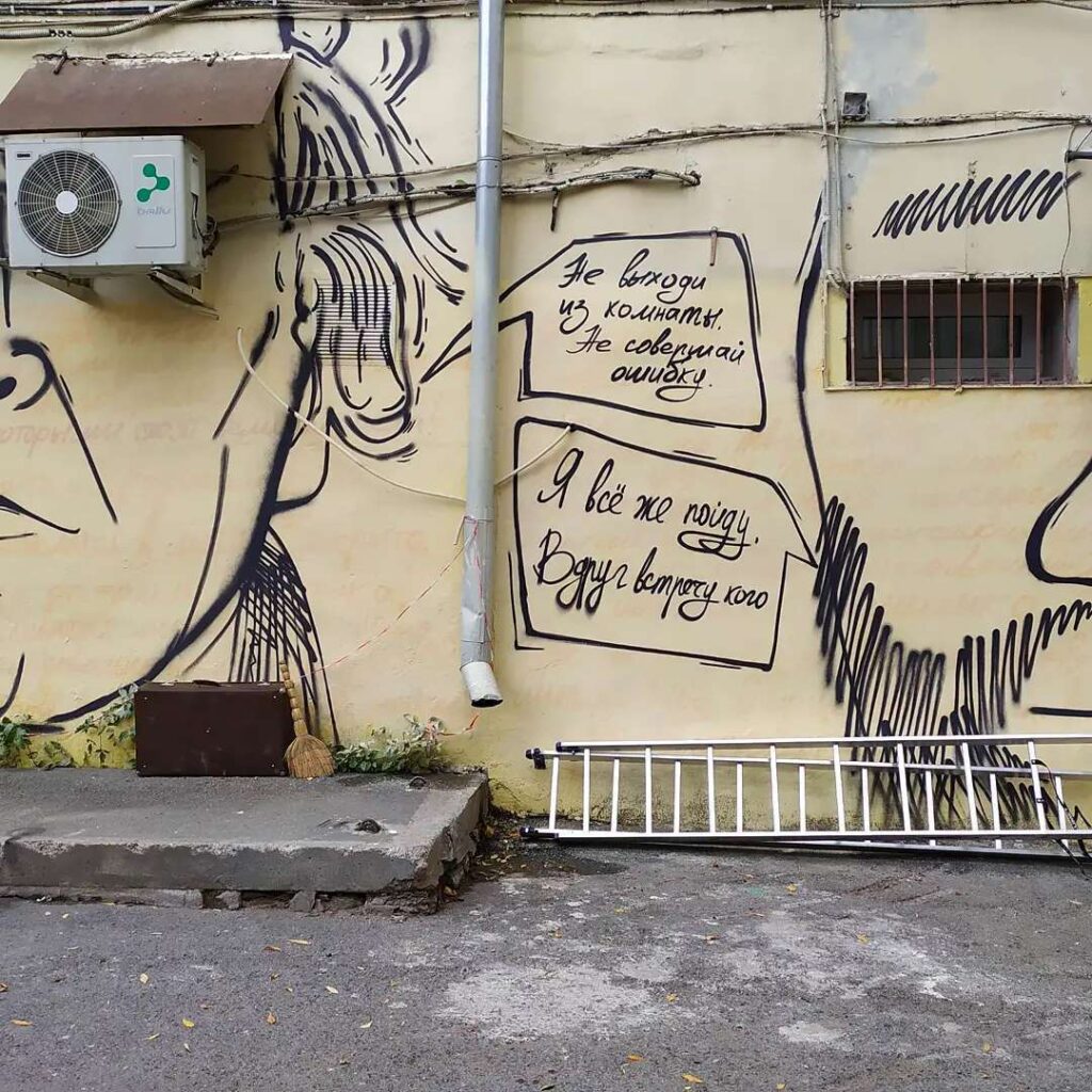 Двор к 80-летию великого писателя облагородили и создали там несколько арт-объектов. На фото их видно: это и отрывки из произведений, и иллюстрации из книг, и маленький Сережа Довлатов, которого несет аист. И даже следы маленького Сержа, которые ведут из его подъезда большой мир…