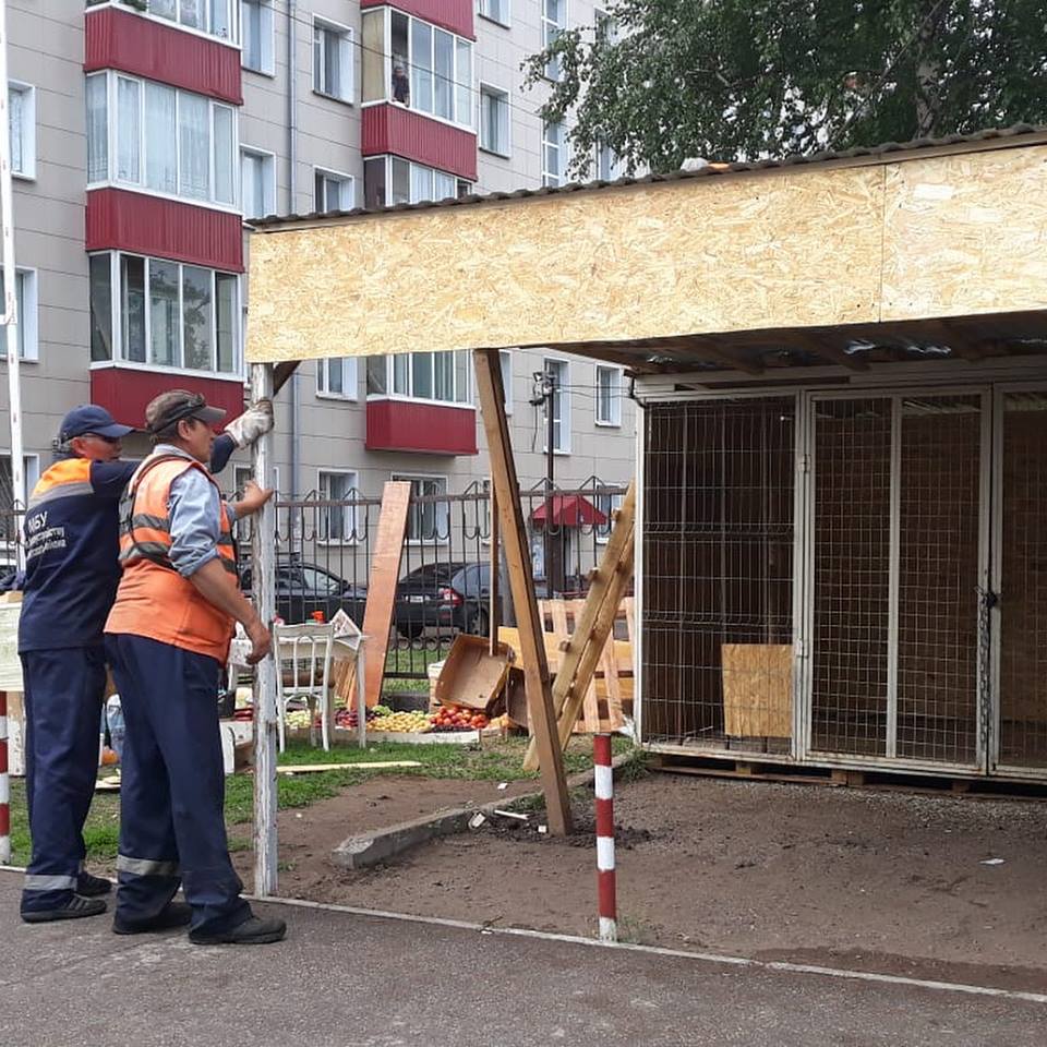 Сегодня была демонтирована последняя (8-я) металическая конструкция «сетка» оборудованная для торговли фруктами и овощами возле дома 3/5 по ул.И.Якутова.