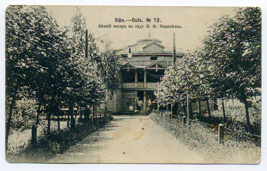 В 1894 году в Уфе меценат В. И. Видинеев построил здание летнего театра на 794 места. Зал был уютный, многоярусный с прекрасной акустикой. К сожалению, театр был снесен в 1991 году.Только три таких театра было в России. В Астрахани летний театр был построен в те же годы. Великолепная деревянная постройка, напоминающая сказочный терем, дважды горела: в 1898 году, вскоре после возведения, и в 1976-м.