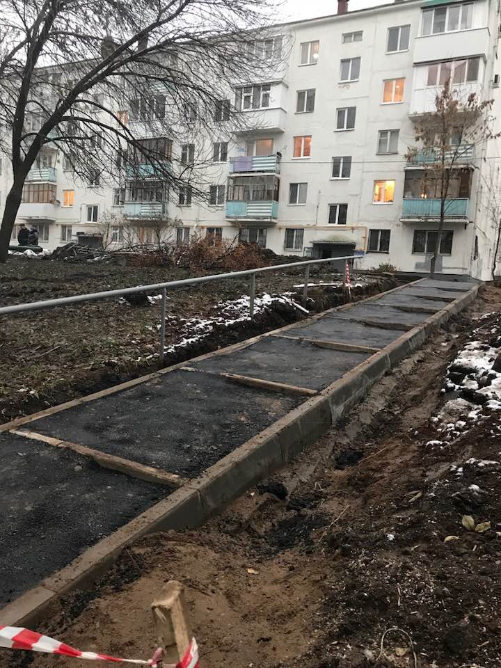 Еще одна деталь благоустройства нашего двора. раньше это была обычная лестница. по крайней мере назначение объекта ни у кого не вызывало сомнений. теперь, после применения прогрессивных технологий благоустройства (бюджет плюс жители) левая часть бывшей примитивной конструкции существенно доработана. как вы видите, она сравнена и превращена в горочку. безусловно это оценят родители с колясками или даже инвалиды-колясочники. кроме того, на санках удобно спускаться, а впереди зимний развлекательный сезон. Возможно, кого-то смутит, что поручень расположен на небольшом удалении — ничего. растяжку никто не отменял. справа на объекте применена инновационная технология утрамбовки асфальта путем создания искусственной неровности с помощью лопат (казалось бы, простой бесхитростный инструмент, а какие результаты!!). так как поручень остался с другой стороны, это решение, безусловно, оправдано, чтобы уважаемые жители, софинансирующие программу, не поскальзывались и не падали. отличный подрядчик — пойду посмотрю, кто выполняет работы. буду рекомендовать!