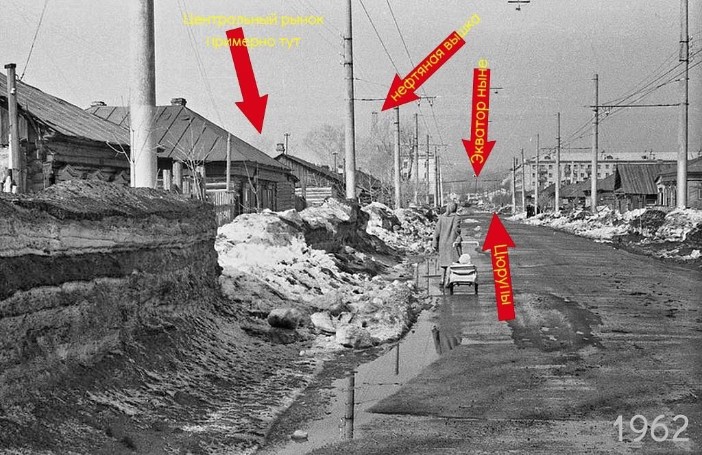 Айбулат Сырлыбаев, в общем отгадал — улица Ивана Якутова. Участок который сейчас за домами по 50 лет Октября от кольца центрального рынка ближе к Дому печати. Пятиэтажки — это дома по Цюрупы.