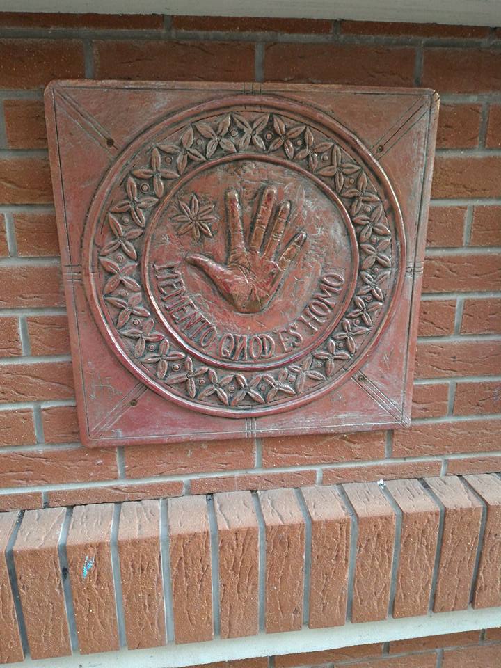 Что это такое? Что за латинская фраза? Чья ладошка? Масонство какое-то…