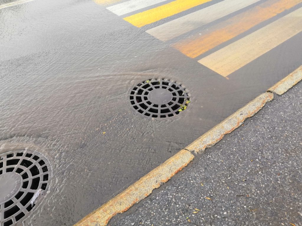 Есть ливневая канализация, но вода аккуратно огибает проблемные участки и продолжает заливать обувь прохожих