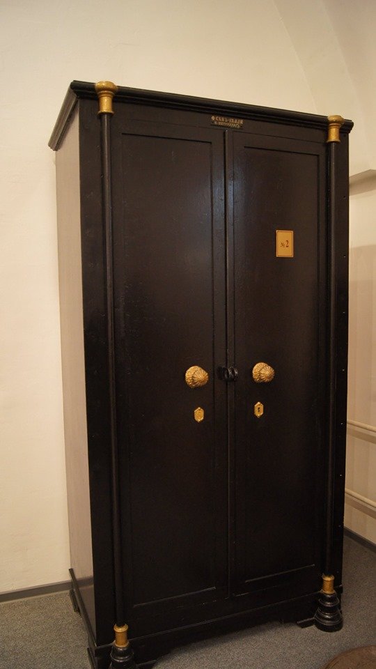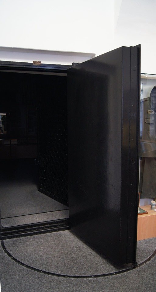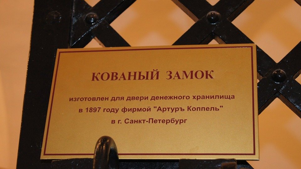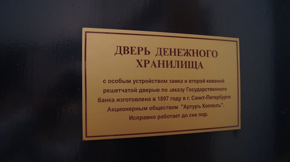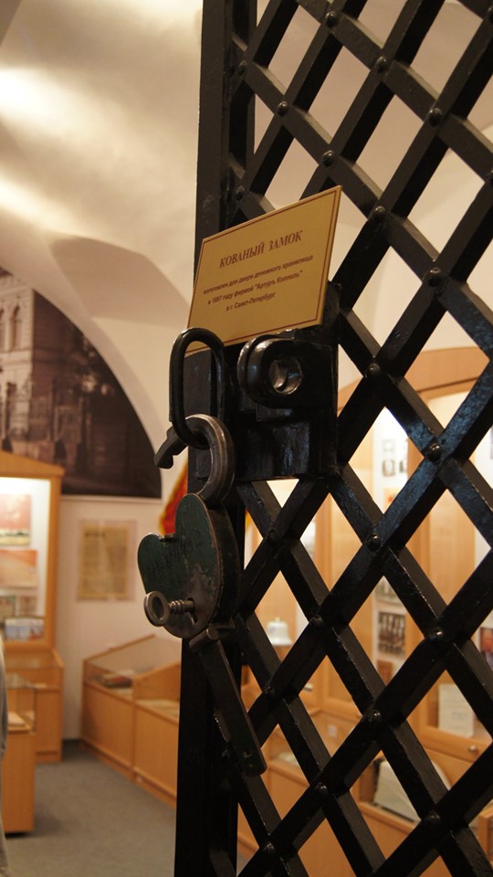 Очень много интересных экспонатов, и главное — это сохранившаяся толстенная дверь с решеткой — механизмы в ней до сих пор действуют исправно.