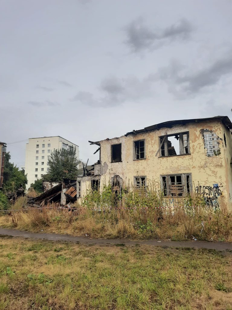 И почти 2 года вот так стоит дом прямо напротив школы на Уссурийской улице.