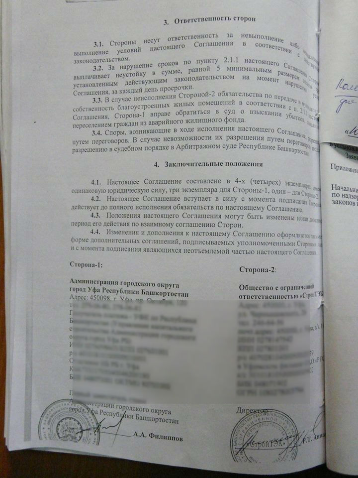 P.S. Как пример выкладываю Соглашение о компенсации затрат от 24.02.2016г., где в п.2.1.1. как раз и указано обязательство застройщика СтроиТЭК передать в собственность города жилье для расселения аварийного жилья.