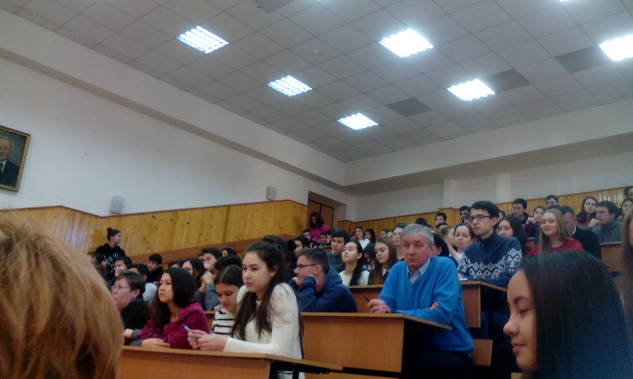 Географический диктант. Обе большие физические аудитории БашГУ забиты битком. В основном, конечно, школьники.