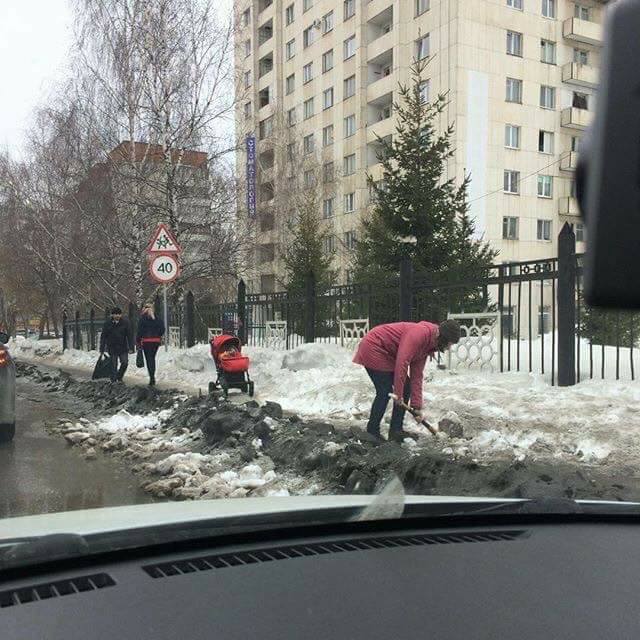 На ул.Шафиева в Уфе замечен агент Госдепа США, который, переодевшись молодой мамочкой с каляской расшатывает кресло мэра Уфы, изображая борьбу с несуществующим гололедом…