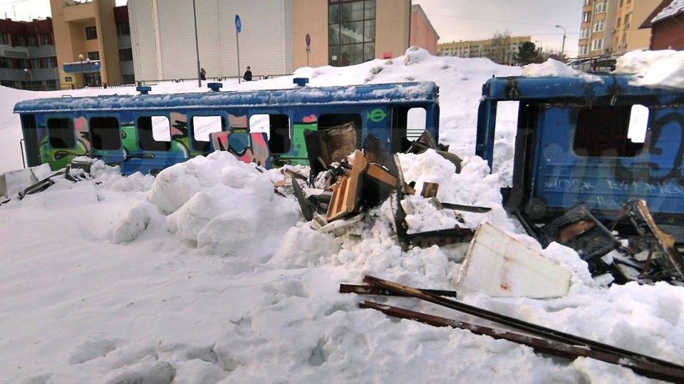 Вандалы обезобразили вагончики детской железной дороги в парке Якутова.