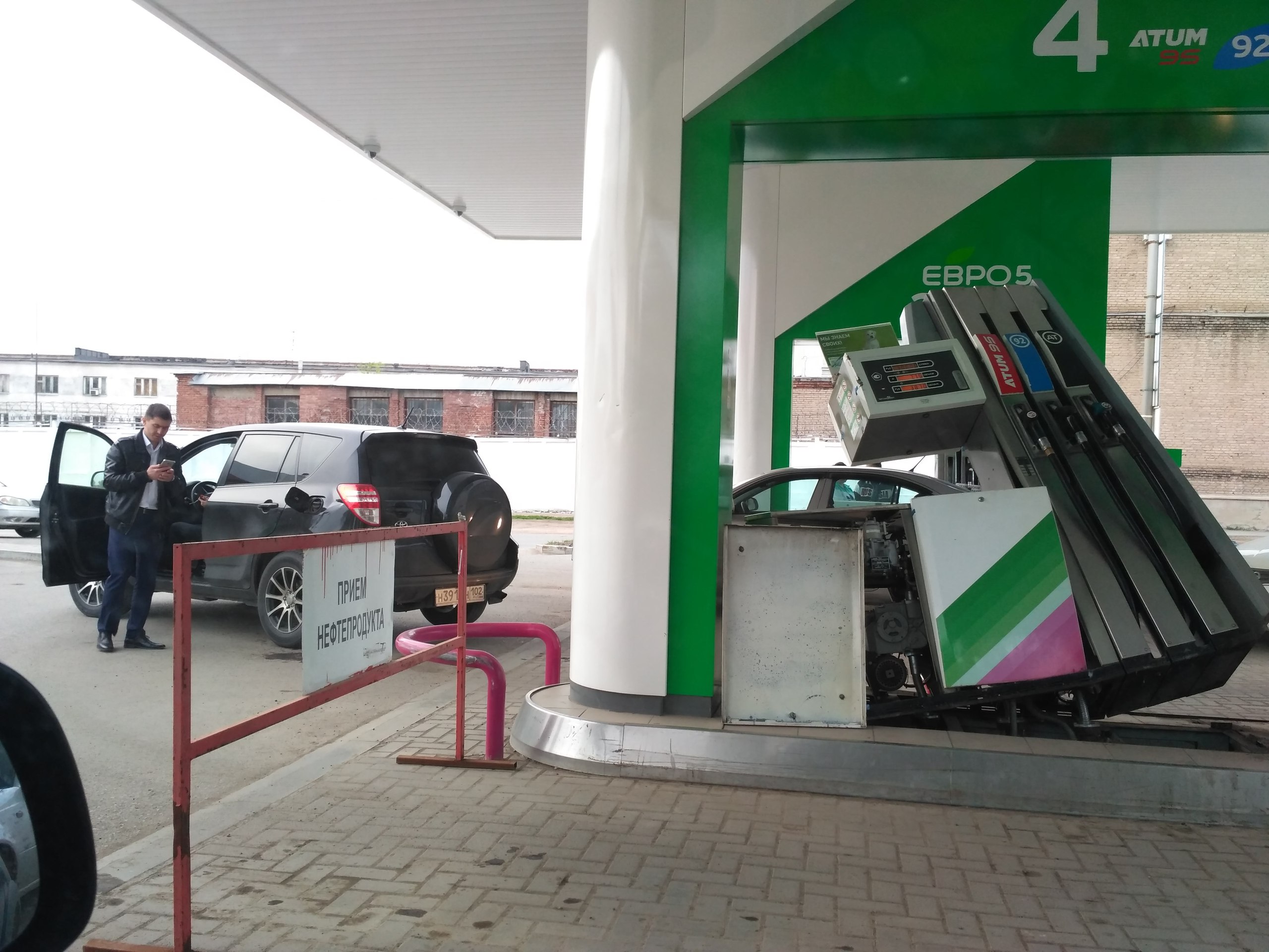 Заправка Башнефть на Оренбургской. Виновница на месте, сидит в машине