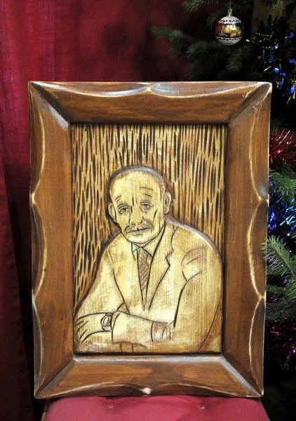 Портрет Р.З.Хамитова. Ручная работа, дерево. Автор — житель Иглинского района Даниль Рафиков.