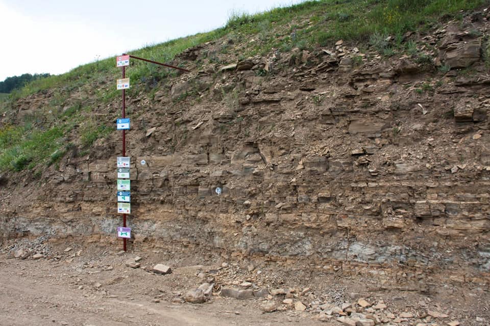 Мечетлинский разрез это вскрытая гора, где на срезе 12 м. высоты видно как формировались слои в течение 10 миллионов лет! Это очень трудно вообразить, тогда это была прибрежная зона, древние папоротники падали в воду, их заносило илом, снова и снова..для эффекта я могла написать — и приходили динозавры на водопой, но даже их еще тогда не было) Ты двигаешься по уровням, читаешь артинский, кунгурский ярус, а внизу деревня, мычать коровы, слышно машины с трассы, если поймать этот диссонанс, то он заставляет остановиться.