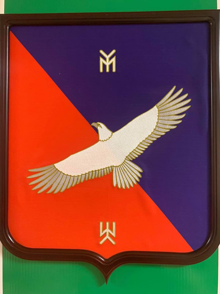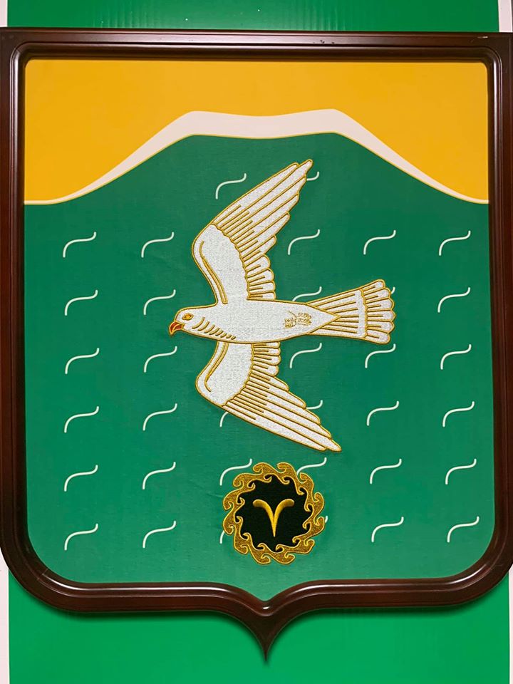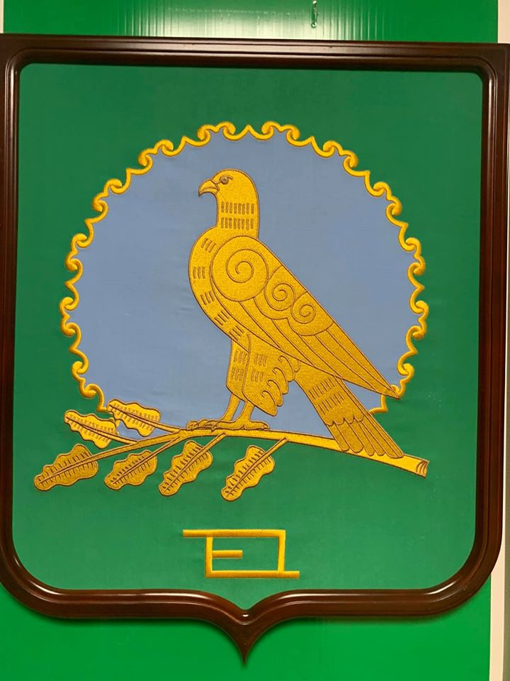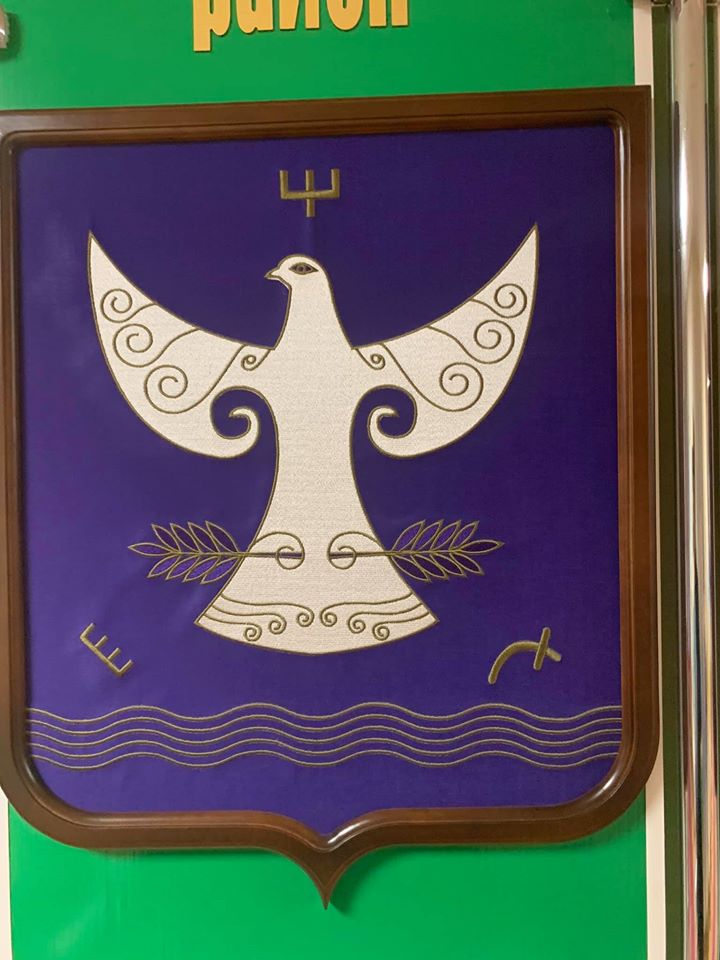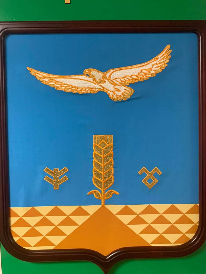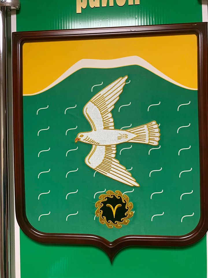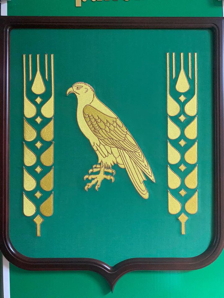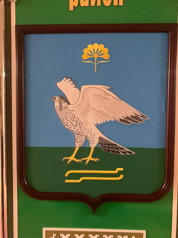 Там есть орлы-беркуты, сапасны, голуби, жаворонки и даже водяной воробей. Большинство составляют степные хищники — видимо, это самое красивое животное, что видел в своей жизни степняк, прадедушка главы района, который согласовывал это изображение.