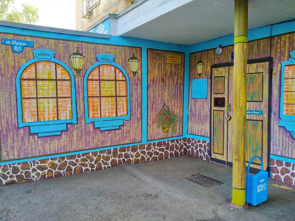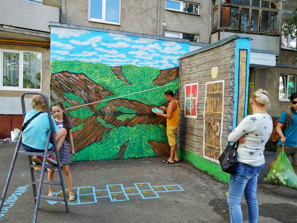 Идешь так среди серых панелей, а тут раз и такое! Художник с детьми рисует, и в глаза заглядывает, и люди останавливаются, хвалят. И тут такое, увы редкое, чувство- это мой город!! И наклоняешься, поднимаешь бумажку, в мусорку ее- это ведь мой город!! Елена Прочаковская, а спасибо через инцидент передают?) Со слов художника директор местного ЖЭУ заказал.