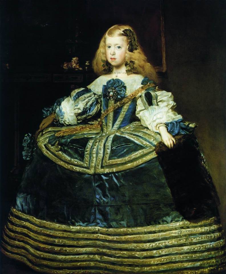 Спустя много лет, я узнала, что инфанта Маргарита – это девочка из могущественного королевского рода Габсбургов. Характерным и отличительным признаком многих Габсбургов был тяжелый выдвинутый вперед подбородок. По крайней мере, у четырех женщин этой семьи в VII веке: Марии Анны Испанской, Марианны Австрийской, инфанты Маргариты и инфанты Марии Терезии – были немного странные, немного непропорциональные, но какие то невероятно притягательные лица — тяжеловатые в подбородке, с большими, загадочно-печальными круглыми глазами. Но вполне возможно, что это всего лишь магия портретов великого придворного живописца — Диего Веласкеса.