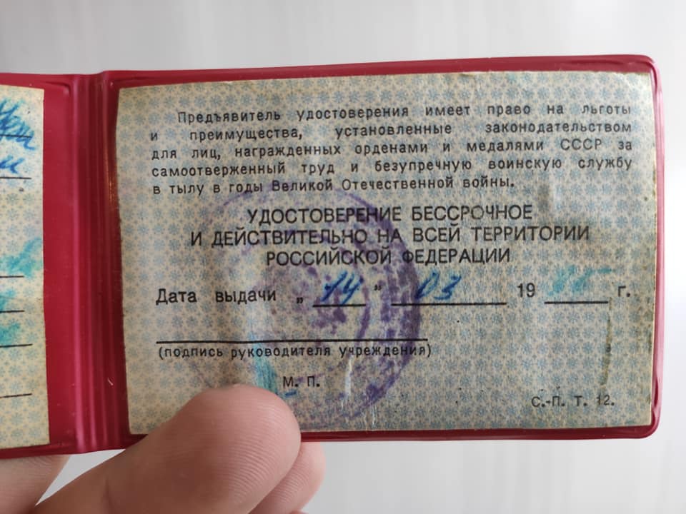 Моей бабушке в этом году исполнится 92 года. Она труженик тыла. У нее есть удостоверение и вкладыш. Все как положено.
