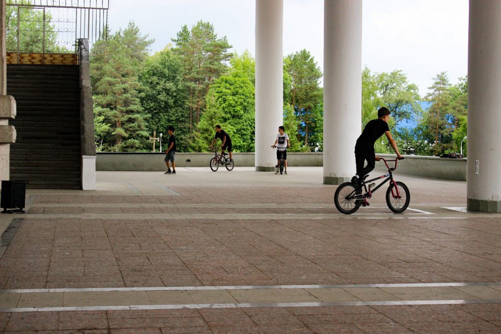 Но это не финал) Как оказалось, недостаточно загадить стены, можно уничтожить сам дух театра! Все начинается по будням, во второй половине дня. Сначала на территорию приезжают фанаты BMX, они обучаются новым трюкам и элементам прямо перед входом. Прогоняет ли их охрана? Нет, ведь никакой охраны там нет, есть только угрожающие наклейки «Штраф за катание на велосипедах — 2000 рублей», которые вызывают лишь смех. Ближе к вечеру подтягиваются фаерщики, ребята учатся крутить огненные шары, общаются, смеются, на том же месте, где катались велосипедисты. Я напомню, речь о русском драматическом театре. Ближе к ночи начинается настоящая жесть, приезжают тонированные девятки, достают кальяны, раскуривают их и начинают радоваться жизни. Прямо перед театром)) Я не знаю, что тут еще можно сказать. В двух шагах Горсовет, но им это безобразие малоинтересно, у них под окнами фонтан уже лет 5 строится. Руководство театра научилось жить с закрытыми глазами, так держать. Пожалуйста, не надо говорить о том, что театр просто в отпуске до сентября, рисункам уже не один год, равно как и посиделкам кальянщиков и собраниям велосипедистов.
