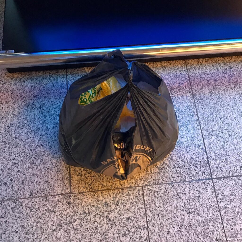 В одном из магазинчиков аэропорта купила пакет (в наличие был только чёрный, маечкой), переложила туда все содержимое из горемыки-чемодана.