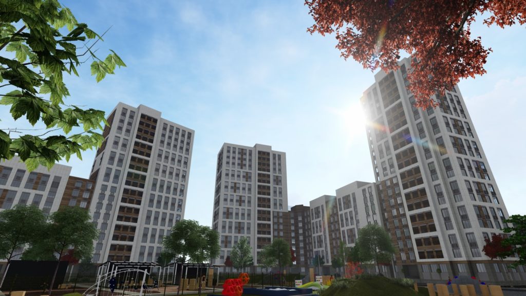 Данная новостройка находится в экологически чистом районе города в окружении первозданного леса. Из окон верхних этажей открывается чарующий вид на реку и горы. Сам комплекс представляет собой оригинальное архитектурное решение – три разноуровневых дома образуют замкнутый двор, внешне напоминающий древнюю крепость.