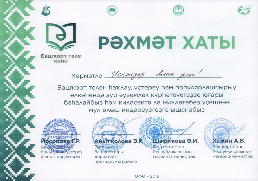 2020 год объявлен Годом башкирского языка в Республике Башкортостан. Предложение Всемирного курултая башкир одобрил Глава республики Радий Хабиров. У меня простой вопрос к Министерству образования и в целом к Руководству Республики Башкортостан. Если рождаемость в Уфе в 2013 г. была большой, если башкирских школ не много, если действительно в них не хватает мест для всех желающих, если из-за этого приходится прибегать к таким вот методам отсева, почему бы не открыть дополнительные классы для детей тех городских башкир, которые пока не очень хорошо знают башкирский, но хотели бы его изучать и иметь соответствующую среду воспитания? Неужели это такая уж нерешаемая проблема? Тем более, что, например, 158 школа сдаёт свои помещения частным организациям – тот же детсад «Дуслык», в котором, к слову сказать, нет ничего башкирского.
