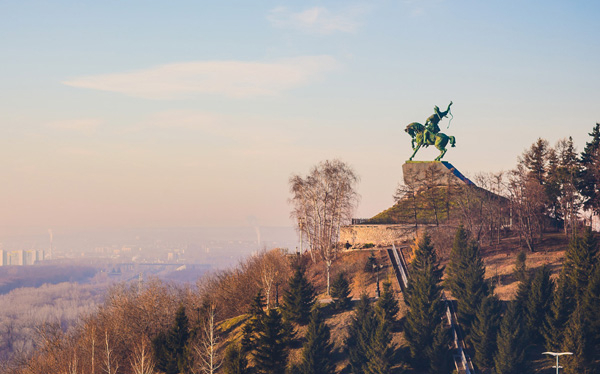 Monument Salavat Yulayev, Ufa, Bashkortostan, Russia sunset, bird’s eye view