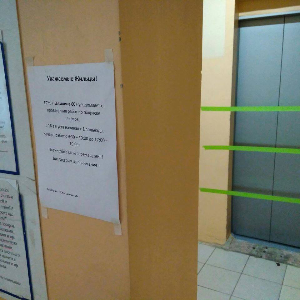 Покраска лифта. Во-первых — зачем красить лифт, а во-вторых, сроки они сорвали, лифт не работал ровно 2 дня. При квартире на 11 этаже — довольно печальные новости.