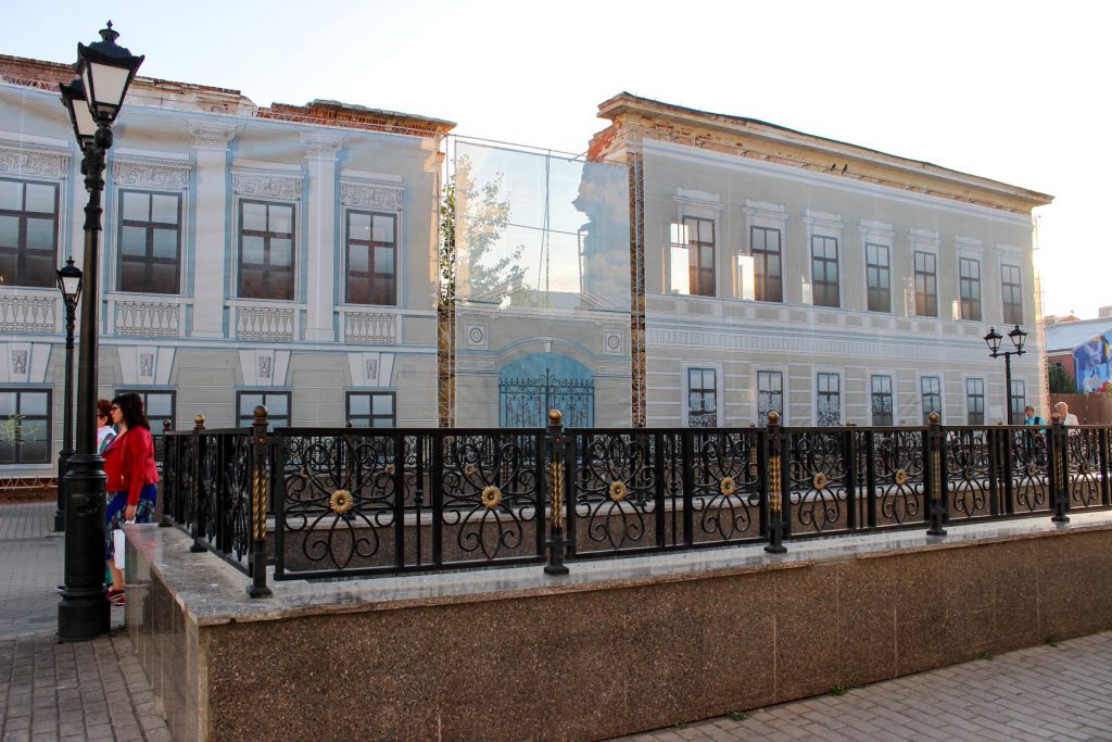 Это домик на Баумана. Не знаю сколько он находится в стадии «сейчас развалюсь». Как видите, позитивные нарисованные фасады популярны не только в Уфе.