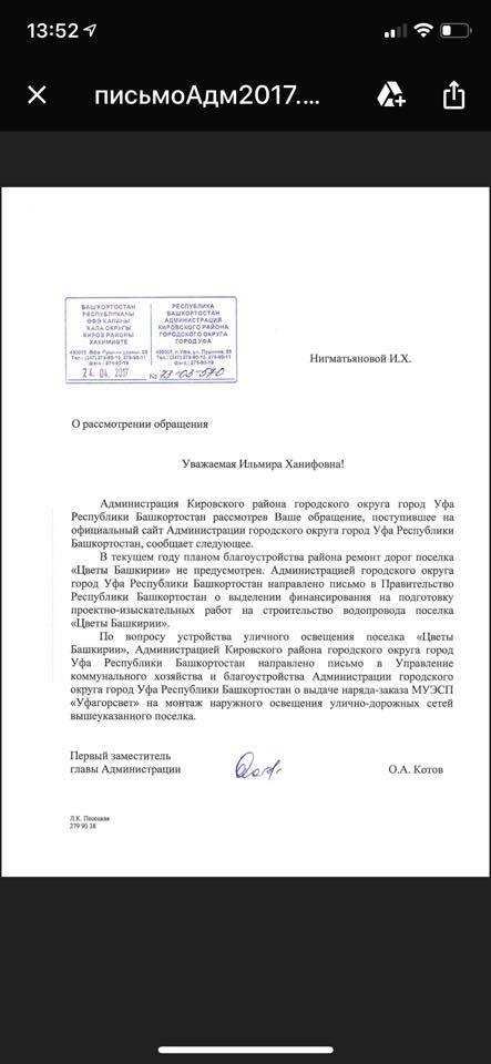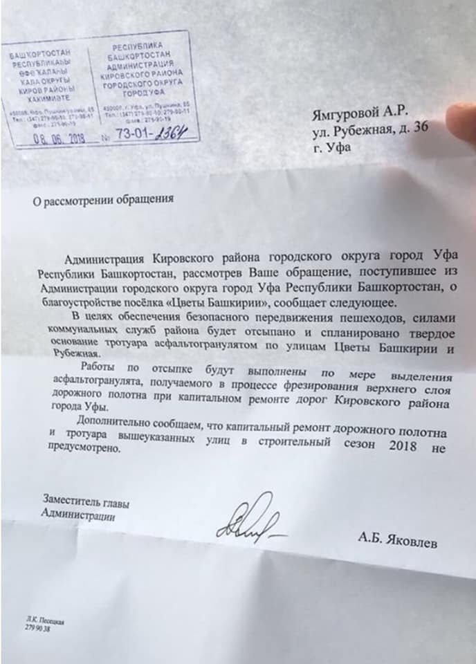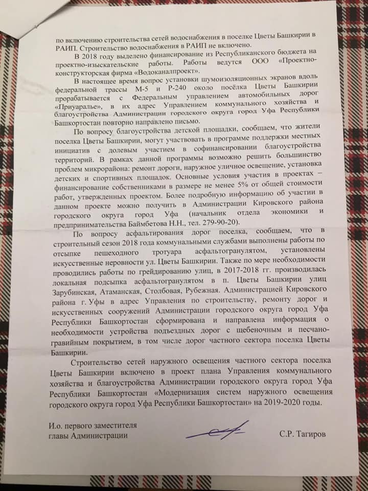 Несколько лет назад наш посёлок присоединили к Уфе. Теперь мы живём в Кировском районе города Уфы. Соответственно всеми нашими проблемами занимается Администрация Кировского района. Думаете что-то сдвинулось с места? Ничего подобного.