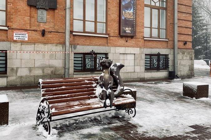 Уф, отлегло! Куница на скамейке нашлась, которая мешала уборке снега у ГКЗ «Башкортостан»! С ней все в порядке, теперь она вольготно расположилась перед театром оперы и балета (видимо, там уборка снега не предполагается).
