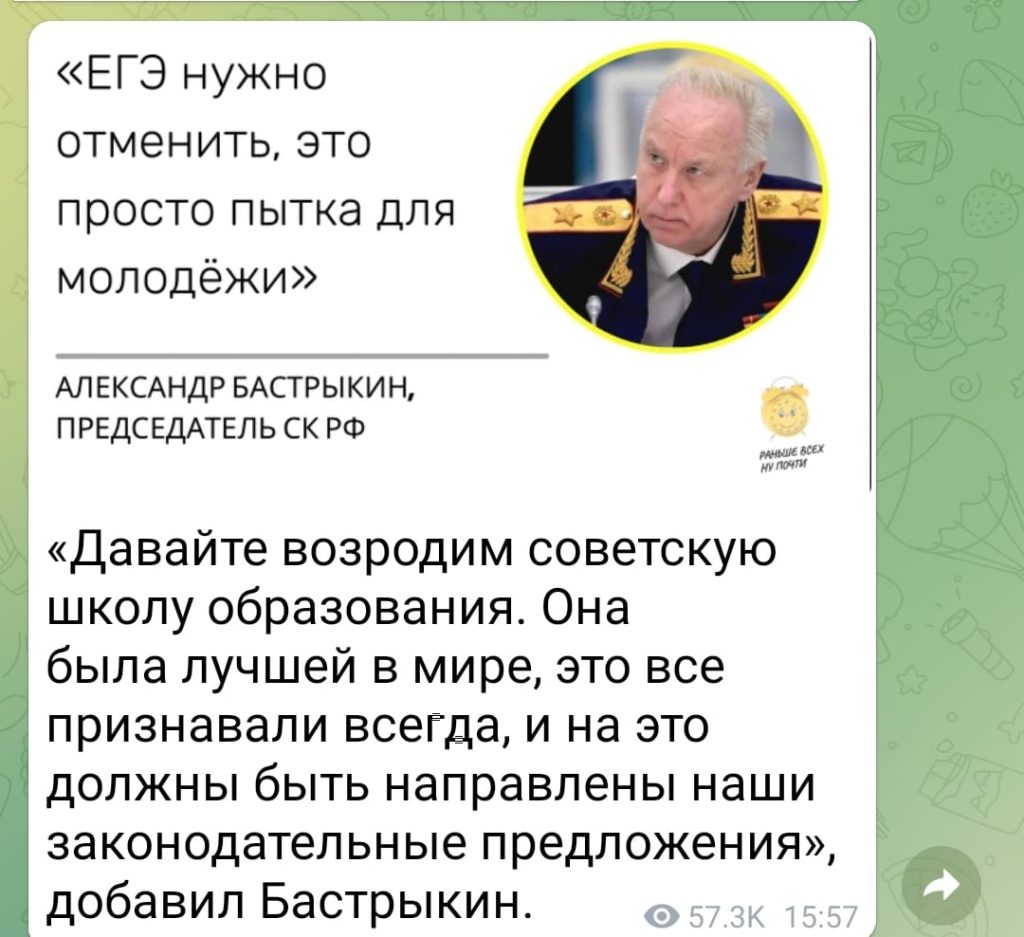 Это мнение чиновника, обладающего огромным авторитетом и властью. Который признает, что советское образование было одним из лучших в мире. Потому что было не бедной падчерицей при богатых хозяевах, а уважаемой матроной и хозяйкой в много национальной семье народов СССР.