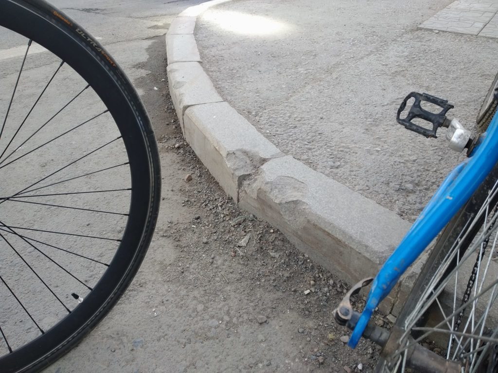 Далее в районе бывшего завода БЭТО — не знаю, что там сейчас, похоже на паркинг, такие же высокие бордюры преграждают дорогу любому колесному транспорту. Что на пересечении с Гоголя, что на перекрестке с Карла Маркса…