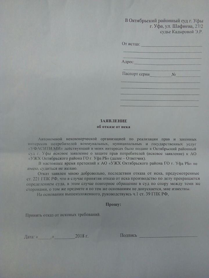 Ничего не сделав, не вернув никаких денег по отоплению, постоянно обманывая жителей как в квитанциях, так и оказывая некачественные услуги, они ходят, вливают в уши бабушкам и дедушкам какую то белиберду, и просят отказаться от иска.