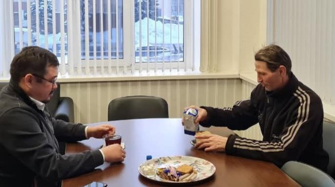 На чай заглянул дворник ЖЭУ27 Юрий Ветлугин, который за один день стал знаменитым