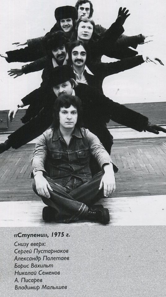 Эпопея создания группы «Ступени» началась с того, что в 1973 году я выступил на факультетском смотре песни и занял там первое место, после чего меня пригласили в институтскую группу «Гармония». В ее составе мы заняли первое место на фестивале «Студенческая весна». Воодушевившись всеми этими событиями, в конце 1973 года я организовал свою группу, пригласив в нее соседа по двору Сергея Пустарнакова, недавно пришедшего из армии, и Колю Семенова с факультета механики. Коля как-то подошел ко мне на танцах, предложил спеть вместе — так и пошло… Голос у него был очень приятный. Четвертым стал Леня Малышев, с которым мы вместе играли в группе «Гармония». Начали репетировать, придумали название «Ступени», показавшееся нам интересным, потом Леня Малышев привел вместо себя своего брата Володю, который тоже играл на соло-гитаре. Все мы оказались гитаристами, поэтому Сергей взялся за барабаны, и у него это стало очень здорово получаться».