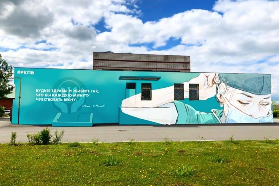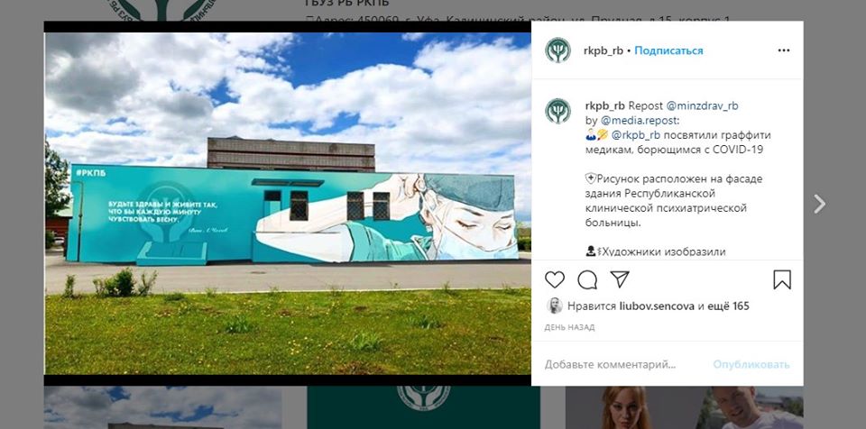 На фасаде здания Республиканской клинической психиатрической больницы появился отличный рисунок, что бы радовать медиков, сражающихся с коронавирусом.