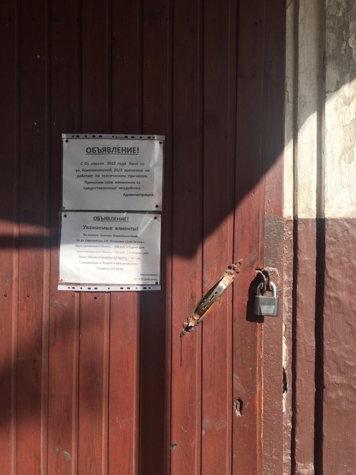 Люди остались без бани, а город не может сказать: будет ли решение этого вопроса и будет ли баня открыта. Прошу все-таки изыскать средства и вернуть этот социальный объект жителям.